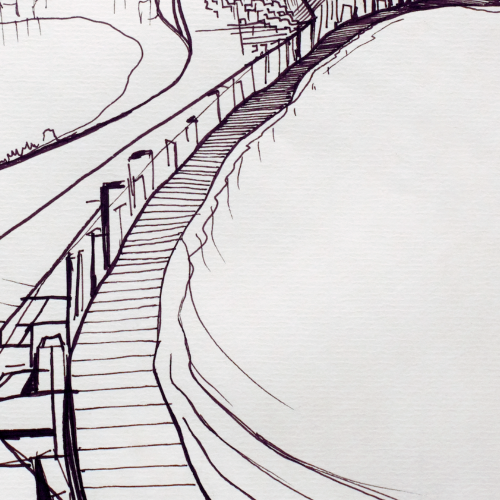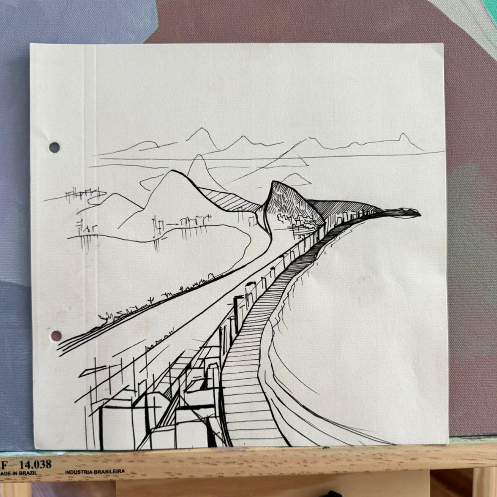 25 cm x 25 cm | Original ink sketch, drawn on location in Rio (with two punch holes on the left)
